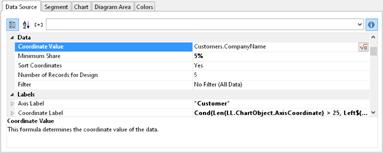 4. Switch to the "Segment" tab to specify the coordinate values for size of the segment, i.e. the sales. Double-click the "Coordinate Value" property.